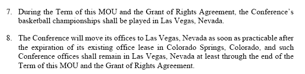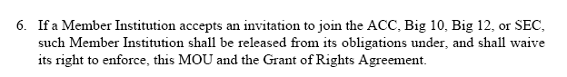 MWC schools are released from obligations of this MOU (not conference exit fees) if an invitation is extended from ACC, Big 10, SEC or Big 12.