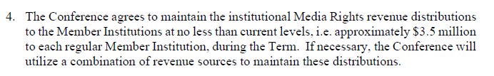 MWC agrees to maintain a $3.5 million annual payment to each regular Member Institution for media rights.