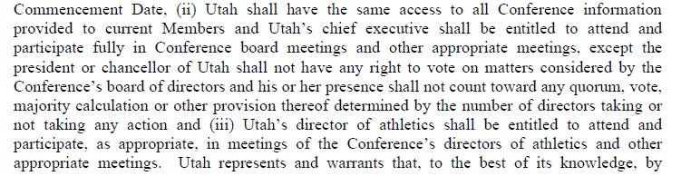 Utah has a “One foot out the door” clause. The Utah Chancellor is given the right to attend Big 12 Board meetings as a non-voting member with access to all information presented to the Board. Oregon and UCLA may have this access but I did not see a similar provision in their agreements.